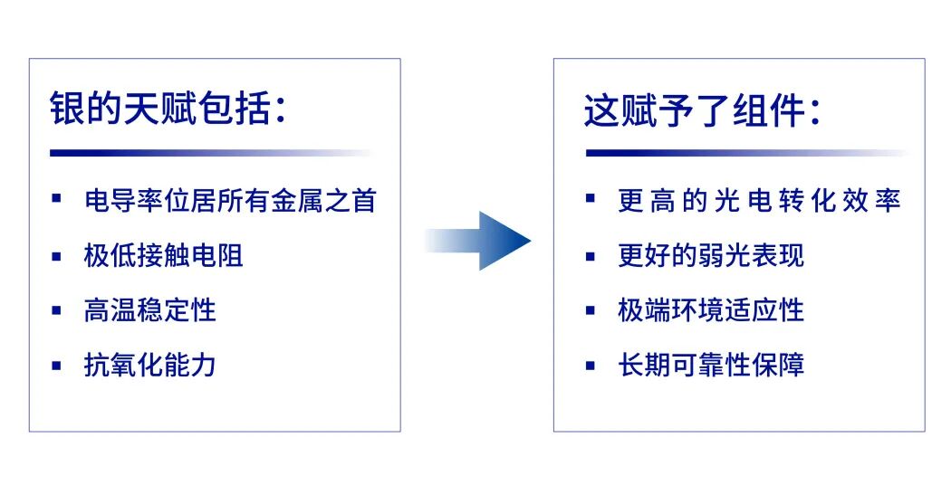 相较廉价金属,银的天赋在数据上只是小数点后几位的细微差异,但在三十年的生命周期,在干热、湿热、昼夜温差超50℃的极端工况,这些天赋将转化为一个极具分量的词:不可替代。