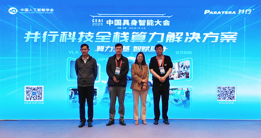 近日,2026中国具身智能大会(CEAI 2026)在合肥蜀山区盛大召开。以“智驱万物 具汇江淮”为核心主题,这场由中国人工智能学会(CAAI)主办、CAAI具身智能专委会与安徽大学联合承办的行业盛会,共汇聚院士、国家级高层次人才及行业领军者1500余名,围绕具身智能从理论探索到产业落地的全链条发展,展开深度碰撞与思想共鸣。并行科技携核心技术与创新方案受邀参会,行业事业部高级副总裁郭宇登台发表主题演讲,并与CAAI具身智能专委会主任、中国科学院大学特聘教授蒋树强,CAAI具身智能专委会副主任、上海交通大学教授卢策吾,并行科技战略总监袁瑛,共同发布“并行科技具身智能全栈算力解决方案”,以算力创新为具身智能产业发展注入新活力。自具身智能首次写入《政府工作报告》以来,这一融合人工智能与机器人技术的前沿领域,已从概念探索迈入产业化提速的关键阶段。本次CEAI 2026大会作为行业风向标,开幕式上重磅发布《中国人工智能系列白皮书——具身智能(2026修订版)》及《2026具身智能十五大方向》,明确了具身大模型、仿真引擎、数据安全等核心攻关赛道,为产业发展锚定方向、绘就蓝图。并行科技紧扣大会核心导向,立足自身算力技术积淀,聚焦具身智能研发过程中的算力瓶颈与数据难题,全方位展现全栈算力赋能产业升级的创新实践与独特优势。大会现场,并行科技行业事业部高级副总裁郭宇以《全栈算力加速具身智能产品研发》为题,带来了一场兼具技术深度与产业温度的主题分享。凭借多年深耕研发与仿真领域的丰富经验,郭宇直击行业发展痛点,深刻解读了当前具身智能产业化进程中的核心桎梏:大规模具身模型训练需数千张GPU集群支撑,单次训练成本高达数千万,实时推理的毫秒级延迟要求与高并发仿真的大规模并行需求,成为算力层面的核心挑战;物理世界交互数据的稀缺性、高质量标注的高成本,以及仿真数据与真实场景的脱节,构成了数据层面的主要壁垒;而多地协同研发中,数据依赖移动存储流转、个人工作站故障易致数据丢失等问题,让信息安全与研发效率的平衡成为行业共性难题。面对行业痛点,郭宇创新性提出“全栈算力基座 数据安全管控”双轮驱动理念,详细拆解了并行科技具身智能全栈算力解决方案的核心逻辑与实践价值。该方案以并行智算云、设计仿真云两大核心产品为支撑,构建起覆盖具身智能本体研发、模型训练、数采标注、多学科仿真、多地协同的全场景算力服务闭环,实现从应用特征分析、算力智能选型到性能优化的全生命周期赋能,真正破解具身智能研发“算力不足、数据不畅、安全不稳”的三大难题。不同于传统算力服务模式,并行智算云创新性融合超算架构与虚拟化云架构,提供裸金属、高性能集群、云主机等多元化产品形态,可灵活适配大规模预训练、高并发推理、高精度科学计算等多样化需求。依托并行科技自主研发的全国算力调度网络,实现全国算力资源的全局统筹与动态调配,确保资源供给的弹性与稳定性。其中,自主研发的ParaSelect性能预测工具表现亮眼,针对10B模型训练速度的预测误差仅1.9%,可在1小时内输出3-5种高适配、高性价比的算力选型方案,4小时内完成算力资源交付,让算力调度更高效、更精准。与此同时,设计仿真云桌面凭借自研远程可视化协议与智能许可证调度算法,已适配200余款主流工业软件,实现数据集中管控、不落地传输,从根源上防范数据丢失与泄露风险,兼顾研发效率与信息安全。郭宇在演讲中进一步分享了并行科技的算力资源硬实力:公司已构建起700,000核心自有算力、2,000,000核心接入资源的庞大算力矩阵,布局内蒙古和林格尔、宁夏中卫、海南陵水等9大核心算力枢纽,可调度GPU资源超50,000卡。创新推出的“算力买手”模式,将资源利用率提升至95%,有效避免算力闲置,帮助企业大幅降低研发成本。凭借19年深耕超算服务的深厚积淀与7×24小时专家团队全程护航,并行科技已为千余家企业、科研机构、高校提供专业算力服务,业务覆盖具身智能、航空航天、生物医药等20余个重点行业,积累了丰富的产业赋能经验。并行科技具身智能全栈算力解决方案,深度契合《2026具身智能十五大方向》核心要求,聚焦具身大模型、仿真引擎、数据安全等关键领域,通过全栈算力优化与数据管控升级,加速实验室技术成果向产业规模化落地的转化进程,为具身智能产业化发展打通算力“堵点”,助力我国具身智能产业实现从并跑到领跑的战略跨越。