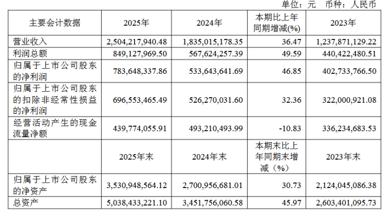 近日,安集微电子科技(上海)股份有限公司(以下简称“安集科技”)披露2025年年度报告,公司全年实现营业收入25.04亿元,同比增长36.47%;归属于上市公司股东的净利润7.84亿元,同比大幅增长46.85%;扣非后净利润6.97亿元,同比增长32.36%。