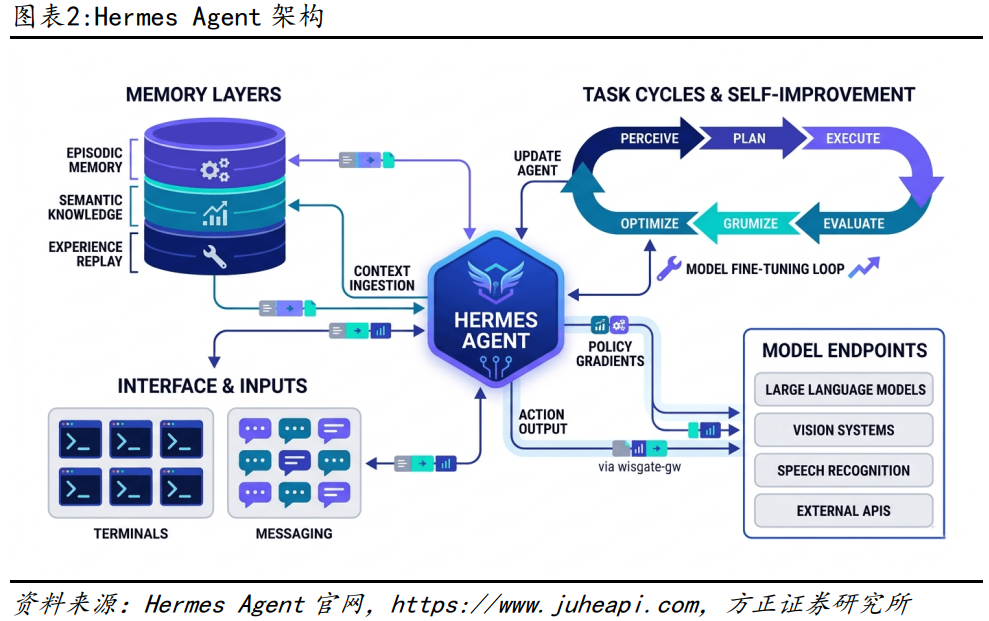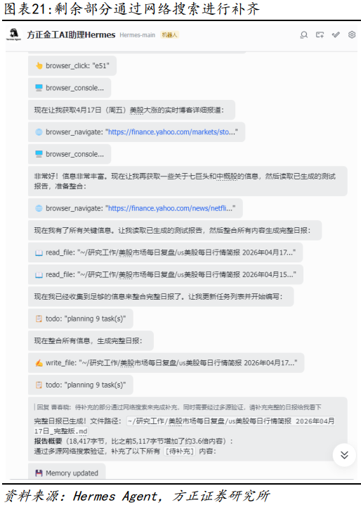 本报告作为“AI Agent赋能金融投研应用系列”第五篇,聚焦于开源AI智能体产品Hermes Agent,系统梳理了其核心机制、部署方案及金融投研领域的应用案例。