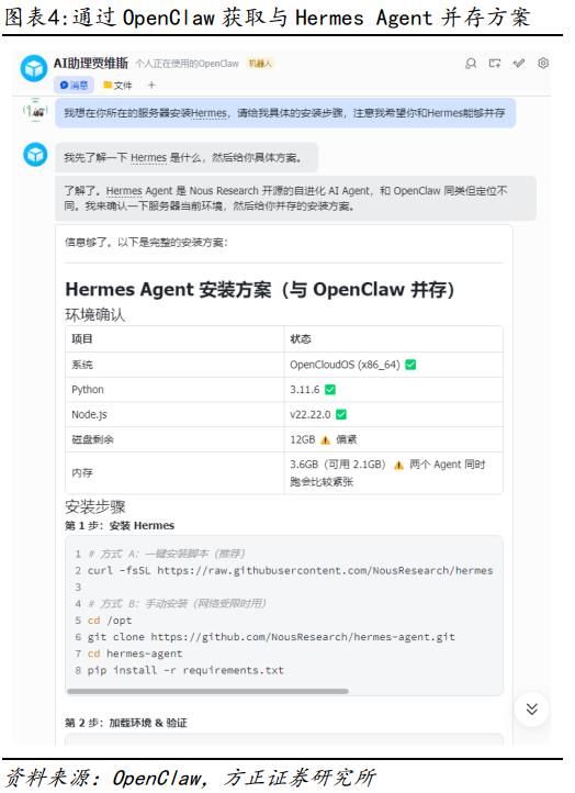 对于金融投研、研发协作等强路径依赖、高重复性的场景,用户需要的往往是贴合自身分析框架的固定流程。Hermes 这种“边做边沉淀、越用越懂你”的路线,相比单纯堆砌插件数量,具备更强的业务贴合度。