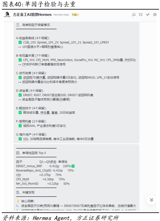 由于Hermes给出的因子方案中部分指标已停止发布,我们补充了部分指标并基于现有指标计算衍生指标,共得到84个细分因子,经单因子检验后由于大量指标之间存在共线性冗余以及预测能力弱等原因,经剔除之后保留29个因子进入模型训练。从初步的训练结果来看,基本符合学术文献中的方向性预测结论。本节内容仅作案例展示,模型预测效果有待提升,仍需要进行大量测试和优化方可落地。