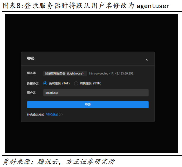 Hermes Agent与OpenClaw并非是完全是相互替代的关系,相反,我们可以在同一台电脑或者服务器上同时部署两款Agent产品,从而实现优势互补以及根据不同需求使用不同AI Agent的目的。本节中我们在已经部署好OpenClaw的腾讯云Lighthouse服务器上,通过OpenClaw实现一键快速部署Hermes Agent的方案。对于不想通过命令行方式部署的用户而言,该方案更为便捷(关于如何在腾讯云Lighthouse一键部署OpenClaw,可以参考本系列前序报告《个人AI助理OpenClaw部署及其在金融投研中的应用研究——AI Agent赋能金融投研应用系列之二》)。