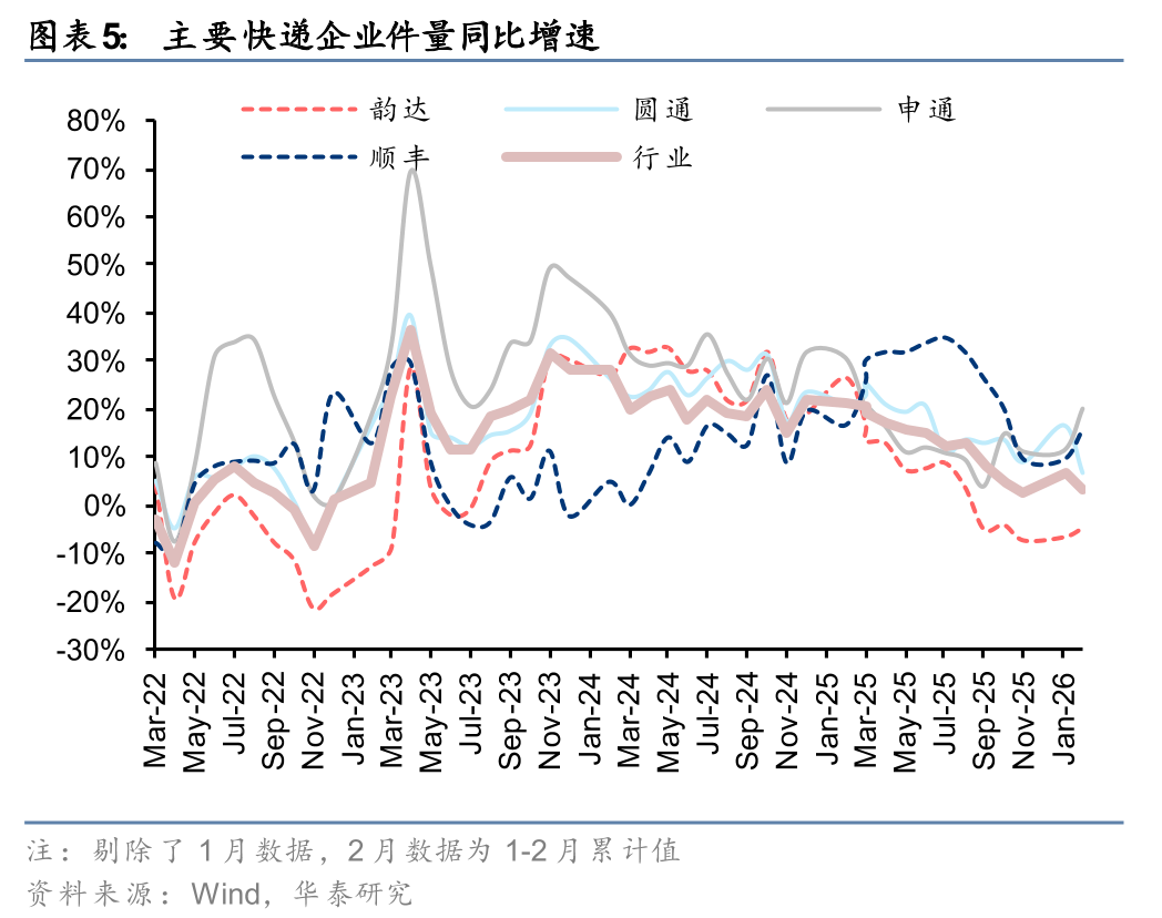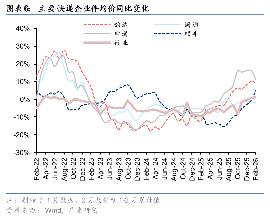 申通圆通件量增速快于行业,1Q26价格环比改善