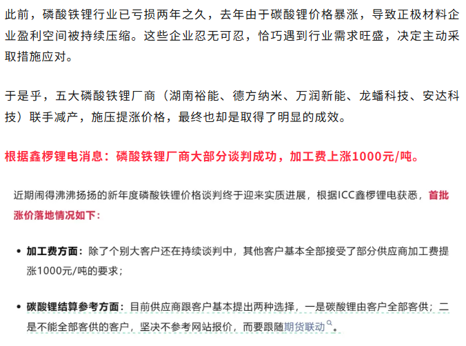 磷酸铁锂正极材料厂商,去年携手挺价。