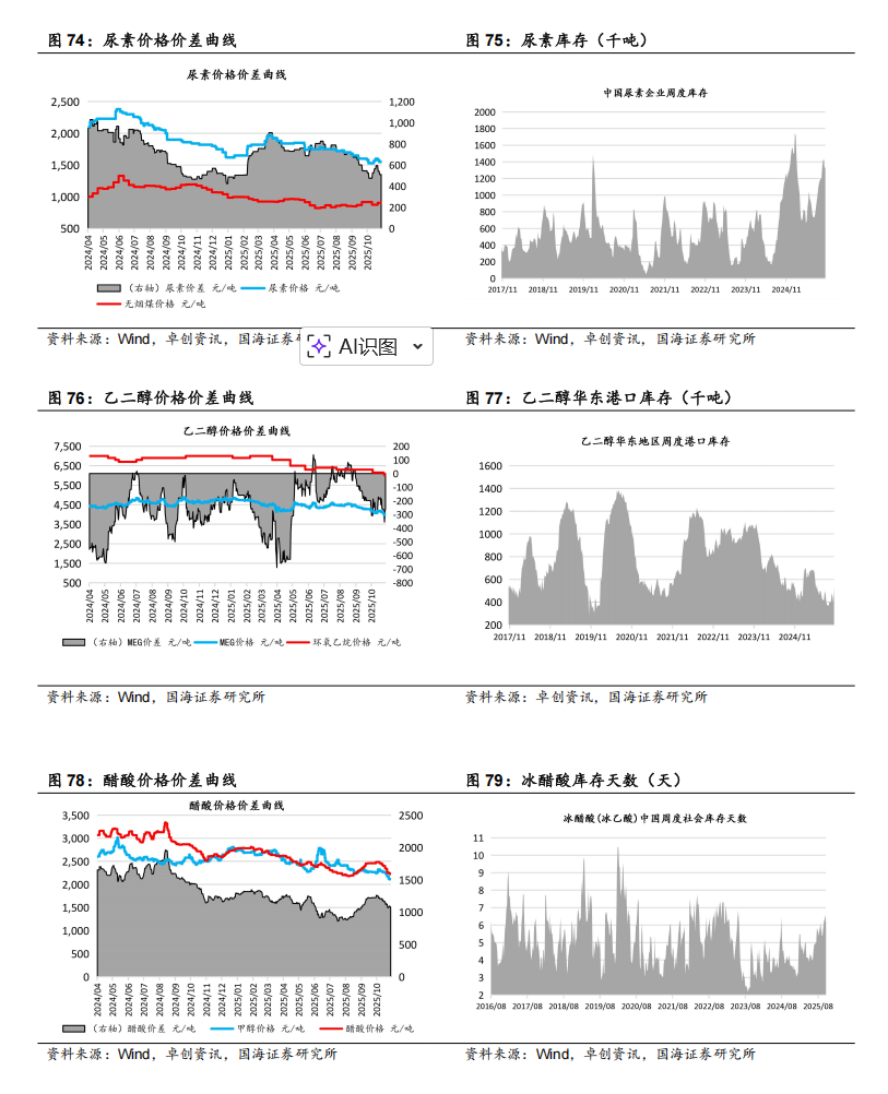 【华鲁恒升】据百川盈孚,2025年11月7日乙二醇价格为4053元/吨,环比10月31日下降86元/吨。据卓创资讯,2025年11月7日尿素小颗粒价格为1550元/吨,环比10月31日下降30元/吨。