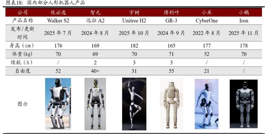 一方面,海外人形机器人领军企业持续推动产品迭代与商业化进程,已明确将工厂等 场景的批量应用纳入近期规划,标志着其人形机器人在工业场景中的实用性与可靠 性获得验证。另一方面,中国企业在人形机器人领域的布局明显加快,2024年以来众 多新品密集发布,未来随着更多潜在重量级玩家的入场,有望催生新一轮产业创新与 投资热潮。与此同时,在技术进步、供应链协同与规模效应共同作用下,人形机器人 的制造成本正持续下探,商业化落地窗口逐渐清晰,为行业从研发示范走向规模化应 用奠定关键基础。
