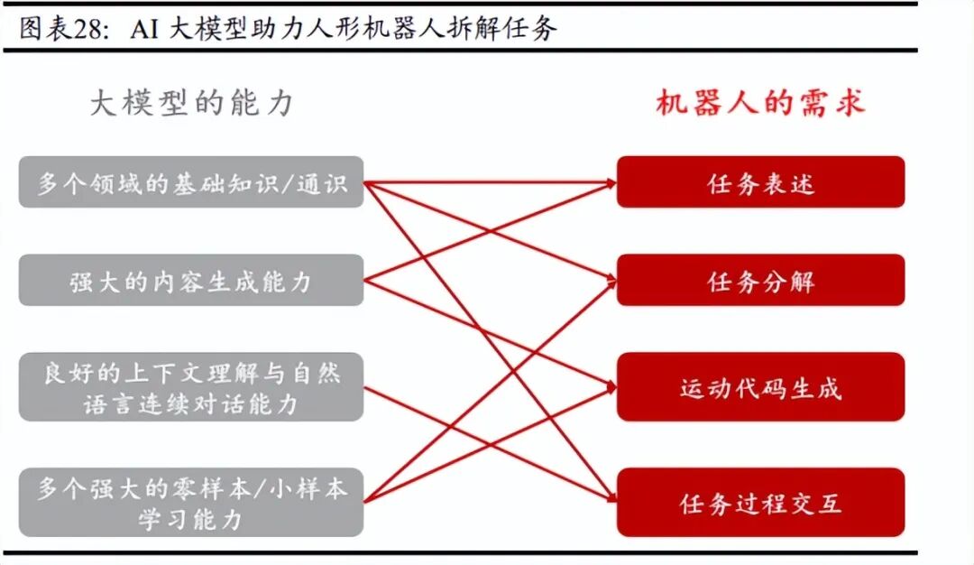 近期,全球科技企业与研究机构竞相投入机器人领域的大模型研发。在传统深度学习 框架下,机器智能往往局限于特定、封闭的任务场景,而以VLA(视觉-语言-动作) 和多模态为代表的新一代大模型正赋予机器人更强大的环境感知与交互能力。通过 整合语言指令、视觉图像、物理空间信息乃至触觉反馈等多模态数据,大模型使机器 人能够更深入地理解复杂、开放的物理世界,在不同动态情境中进行自主推理与任务 泛化,从而向实现真正的具身智能迈出关键一步。 自2022年末Chat GPT引爆生成式人工智能浪潮以来,大模型技术迅速向具身领域延 伸与融合。国际方面,微软推出了专用于机器人任务的ChatGPT for Robotics,谷歌 则通过Robocat、RT-2及DeepMind的RT-X系列,持续探索多模态指令理解与机器人操 控的协同;斯坦福大学李飞飞团队的VoxPoser通过大语言模型生成可执行的机器人操 作轨迹,英伟达的Eureka框架则利用大模型优化机器人控制策略;海外创新企业如 Figure AI也发布了其机器人模型Helix。国内的宇树科技开源了UnifoLM-VLA-0模型, 阿里巴巴、华为等科技巨头也依托各自的云平台与盘古大模型体系,积极布局机器人 智能化解决方案。 以大模型为核心的机器人基座正成为行业竞争新高地。从处理语言与图像的RT-2,到 融合多种感官信息的端到端模型,技术的快速迭代使人形机器人实现自然、智能的交 互与自主任务执行成为可能,为整个产业打开了全新的成长空间与发展想象力。