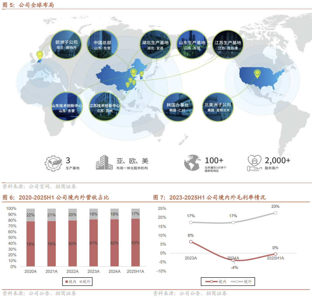 国内布局: 拥有山东东营、江苏连云港、湖北宜昌三大生产基地。多基地布局具备长期稳定的供应能力,贴近客户与原料产地,大幅降低运输成本。