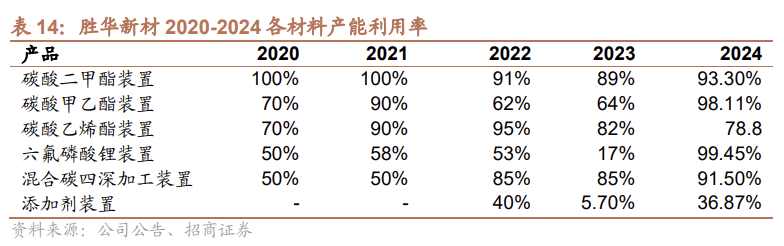 锂电池材料: 公司业务主要布局电解液上游材料,是国内少数能同时供应5种锂电池碳酸酯溶剂(DMC、EMC、DEC、EC、PC)的企业。为拓展第二增长曲线,公司积极布局新型添加剂产品,包括双氟磺酰亚胺锂(LiFSI)、碳酸亚乙烯酯(VC)、氟代碳酸乙烯酯(FEC)、硫酸乙烯酯(DTD)等。公司已建成77万吨碳酸酯溶剂产能,规模效应明显。2024年四季度公司1.27万吨添加剂项目投料试生产,2025年上半年已实现对电解液头部企业批量供应公司,明年有望达1.5万吨产能,其中VC产能1.1万吨,后续通过技改或可提升至1.3万吨。