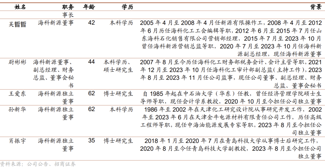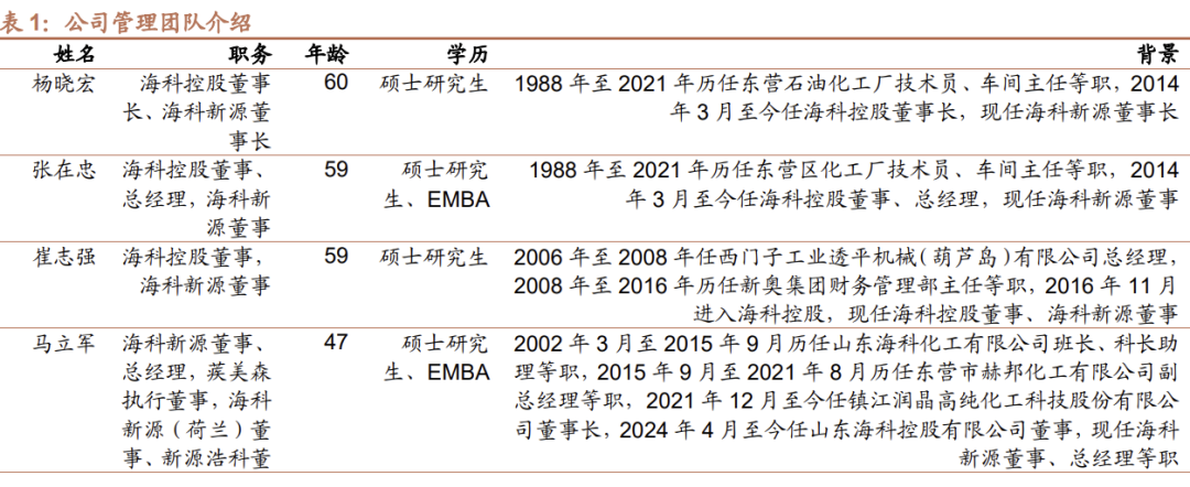 公司管理团队在化工及新能源材料领域拥有深厚的技术背景和丰富的行业经验。