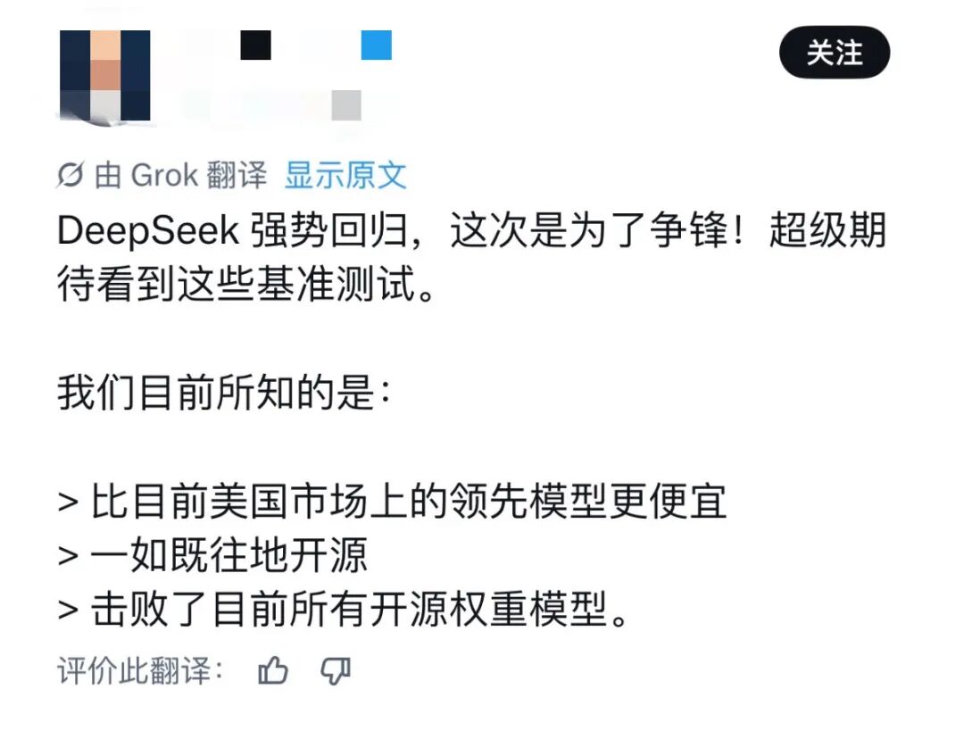 距离去年1月的大版本更新已经过去了15个月,DeepSeek这次在海内外全网发布大更新后,热度飙升。海外社媒有不少网友也第一时间关注了DeepSeek的更新,在DeepSeek评论区,大家纷纷表示,“鲸鱼回来了”“便宜又强大”“这太震撼了,如果那些效率突破成立的话”。