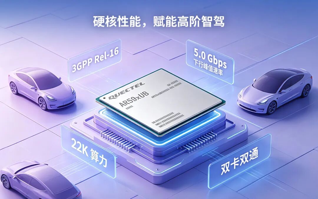 该系列模组基于紫光展锐新一代车规级5G蜂窝通信处理器芯片组A7726打造,深度融合5G通信、C-V2X车路协同与北斗高精度定位技术,不仅实现“通导一体化”能力,更以完全自主可控、高集成度的芯片设计,构建标杆级车载无线通信解决方案,为智能网联汽车提供稳定、可靠的通信与定位保障。硬核性能:5G R16 大算力,满足ADAS对大带宽、边缘计算需求在核心通信性能方面,AR59xUB系列展现出强劲实力。该模组全面支持3GPP Release 16通信协议,软件可升级支持Release 17特性,具备200 MHz带宽与NR 2CC双载波聚合能力,下行峰值速率最高可达5.0 Gbps,叠加千兆以太网通信能力,可流畅支撑高清地图实时更新、车载娱乐流媒体、车路海量数据交互等高带宽业务,彻底解决辅助驾驶场景下数据传输卡顿、延迟问题。针对复杂行车环境下的通信稳定性需求,模组凭借双卡双通(DSDA)技术,能够实现双网并行传输以及关键业务通道隔离,有效规避单一网络信号薄弱、中断等风险,大幅提升复杂路况、偏远区域的网络覆盖能力与通信可靠性。算力支撑方面,模组内置四核Arm Cortex-A55处理器,算力高达22K DMIPS,为多设备协同、实时数据处理、车载边缘计算等场景提供充足算力储备,高效满足汽车的快速响应与精准决策。通导一体融合:C-V2X 北斗高精定位,精准契合新国标作为通导一体化车载通信方案,AR59xUB系列深度融合C‑V2X车路协同技术,支持LTE‑V2X直连通信,峰值速率达48 Mbps,可实现车与车(V2V)、车与路侧(V2I)、车与人(V2P)的低时延、高可靠信息交互,提前预警危险路况、突发事故等风险,为行车安全增添重要保障,这与2027版中国新车评价规程(C-NCAP)新增的危险报警车辆提示、事故车辆提示等测试场景需求高度契合。定位方面,模组支持北斗双频高精度定位,提供精准位置服务与协同能力,为辅助驾驶、交通效率优化、路径规划等场景提供有力支撑;同时提供北斗优先定位模式,完全符合新国标要求。值得一提的是,AR59xUB系列实现了关键物料全国产化,基带、射频、V2X、存储等核心器件均采用国产车规级方案,具备高鲁棒性,符合IATF 16949车规标准,可适应车载场景下的复杂温湿度、震动等环境,确保产品长期稳定运行。硬件层面,产品延续移远通用车规级模组封装与Pin定义,支持Drop‑in直接替换,无需对现有产品设计进行大幅调整,即可帮助客户快速完成产品升级,大幅缩短开发周期、降低研发成本。软件层面,模组采用移远自研QuecOpen®架构,软件系统可平滑延续,API接口与主流平台高度复用,显著降低客户软件开发工作量,进一步提升量产效率。此外,AR59xUB覆盖国内与海外主流频段,满足全球车企量产需求,同时支持eCall/NG‑eCall紧急呼叫系统,全面提升行车安全保障。