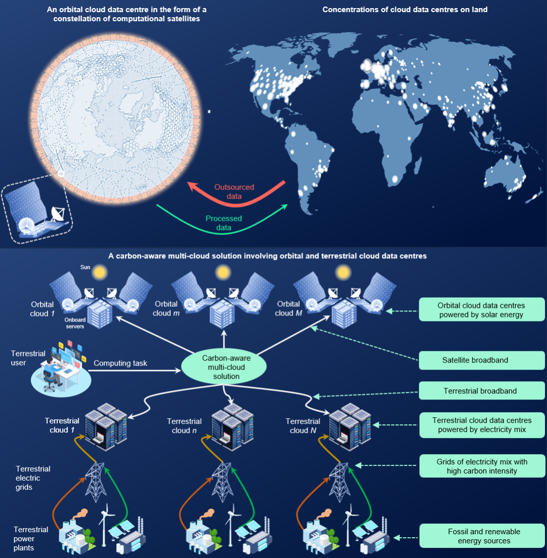 浙江大学针对近地轨道数据爆炸性增长与地面数据中心碳足迹高昂的并存挑战,首次系统性地提出了在太空中构建碳中和数据中心的完整技术框架与评估体系。