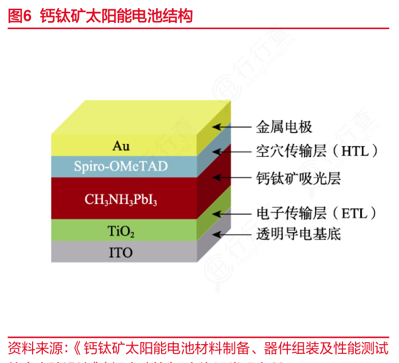 钙钛矿太阳能电池一般由透明导电基底、电子传输层(ETL)、空穴传输层(HTL)、钙钛矿层及金属电极组成。