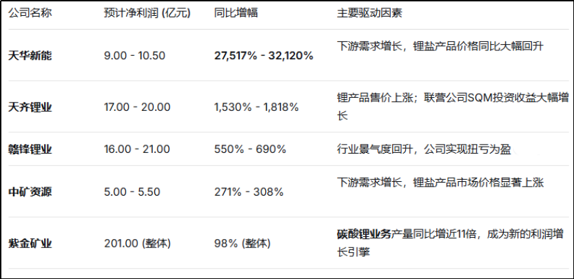 Q1锂矿上游主要上市公司业绩增长情况
