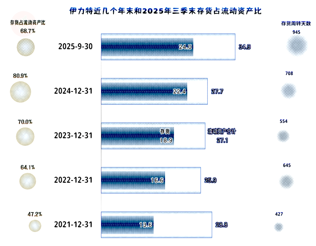 资产负债率并不高,哪怕是2025年三季度末有所增长,仍然不算高,其流动比率也是优秀级的表现,但速动比率从2024年末以来就偏低,2025年三季度末也有所下降,这当然是存货增长太快导致的,我们还是有必要看一下。