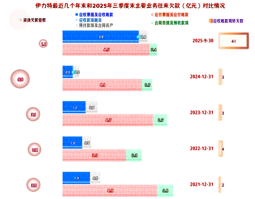 伊力特前几年已经就试着通过应收款的方式在销售商品了,2025三季节末的应收账款的规模增长还不低,比好多同行要明显很多,这种尝试是事其应对行业下行的无奈之举,应该是他们觉得这样可行才搞的。