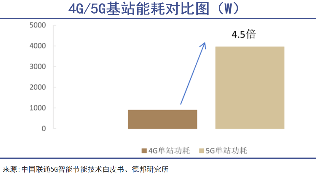 另一方面,根据各种公开数据,5G在实际运营中的单基站耗能是4G的4.5倍。