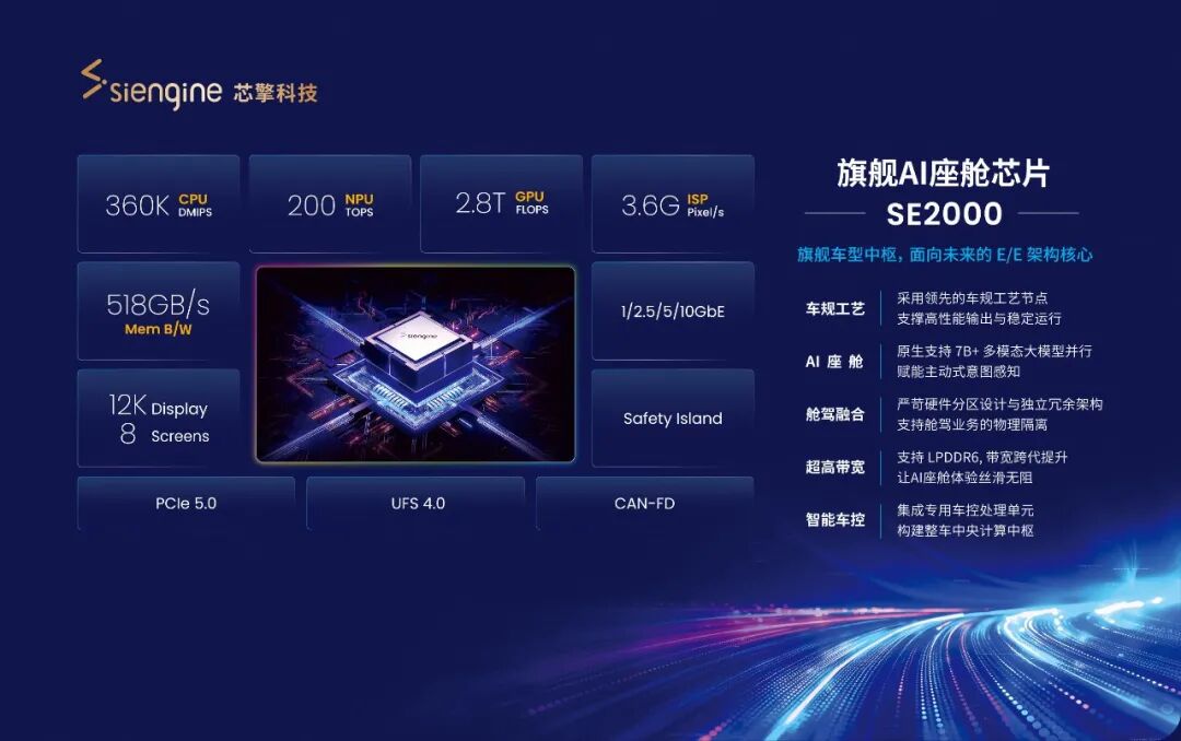 在2026年北京国际车展上,芯擎科技为中国高端车规芯片再添一项重磅成果—— 5nm车规级AI座舱芯片“龍鹰二号” (SE2000)。