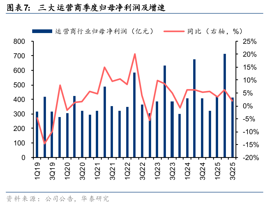 运营商:3Q25归母净利润稳步增长,运营效率提升