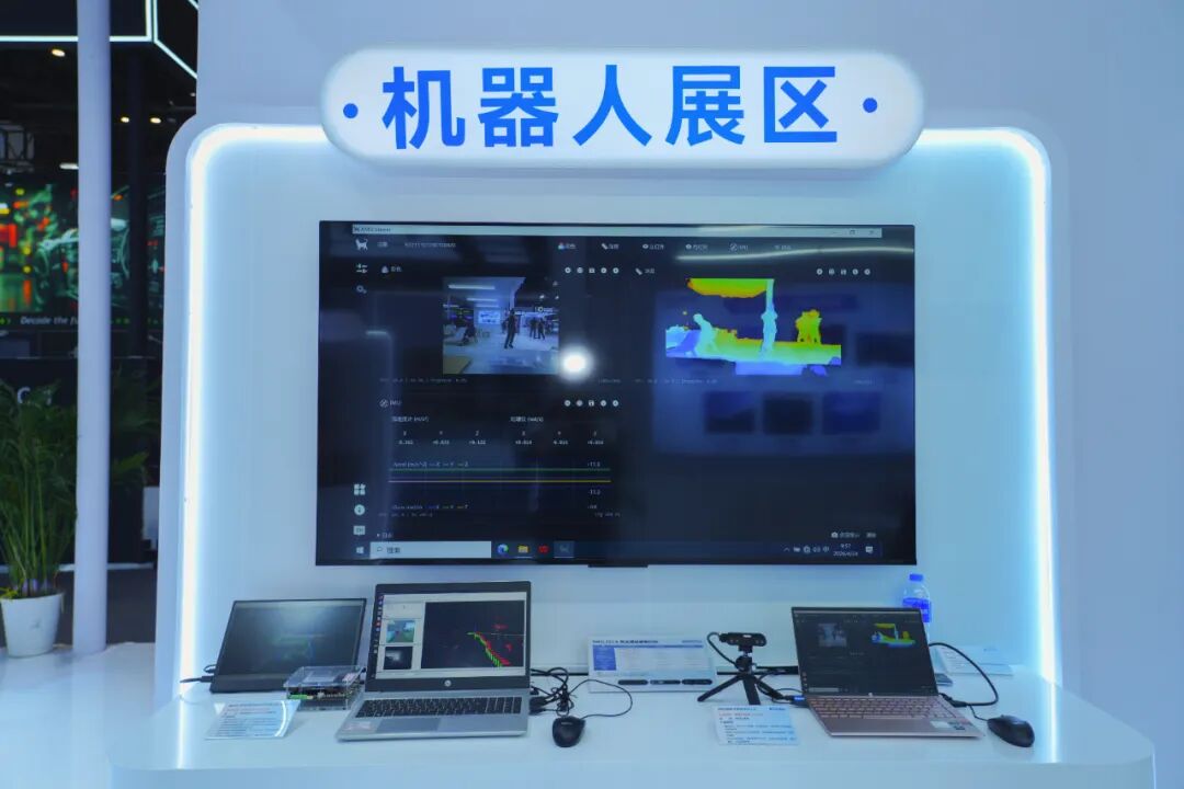 在机器人技术方面,瑞芯微展示了RK3588为算力核心,搭配自研RMSL321结构光的纯视觉SLAM与导航避障方案。该方案采用RGB、深度信息、IMU及轮速里程计等多传感器数据融合的ORB SLAM3算法,通过GPU加速矩阵运算加速并优化算法,降低30% CPU占用率;同时构建具有回环优化的全局点云地图和全局代价地图,和2.5D高程地图。目前RK3588已广泛应用于丰富的机器人形态,并在各行各业落地商用,包括人形机器人、机器狗、服务机器人、工业巡检机器人、清洁机器人等。