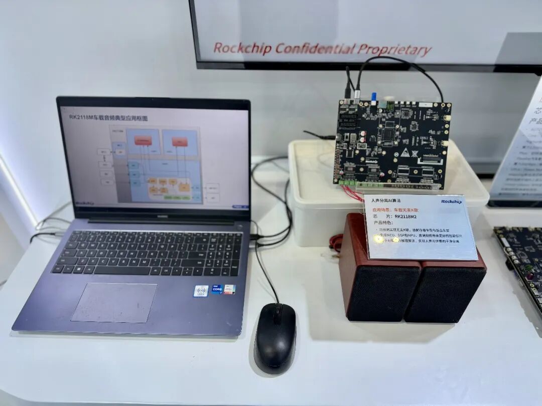 在车载声学领域,瑞芯微重点展示了国内领先的集成NPU算力车规级音频DSP芯片RK2118M2,填补了国产音频DSP在AI算力方向的空白,目前已在业内广泛应用,场景覆盖内外置功放、品牌音响、无麦K歌等。
