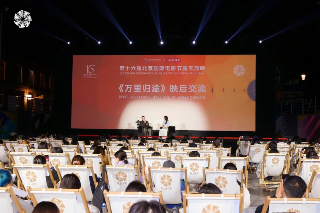 放映结束后,导演饶晓志亮相《万里归途》映后交流现场,笑着感慨:“露天放映是我小时候的回忆,这种场域很有温度,会让我想起爱上电影的那些瞬间。”