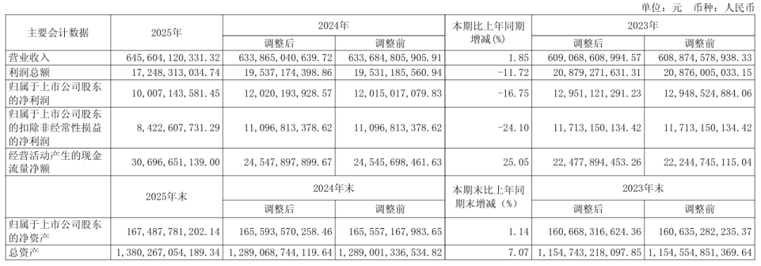 储能知家讯,4月23日,中国电建发布2025年年度报告。报告期内,公司实现营业总收入6462.37亿元,同比增长1.81%;归母净利润100.07亿元,同比下降16.75%;扣非净利润84.23亿元,同比下降24.10%;经营活动产生的现金流量净额为306.97亿元,同比增长25.05%;基本每股收益为0.5276元,加权平均净资产收益率为6.40%。