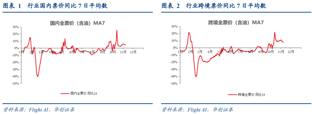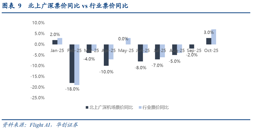 6-8月,行业历经了票价的同比负增,而在进入传统淡季的9月后,自中旬起,全票价同比回正,且趋势保持至今。