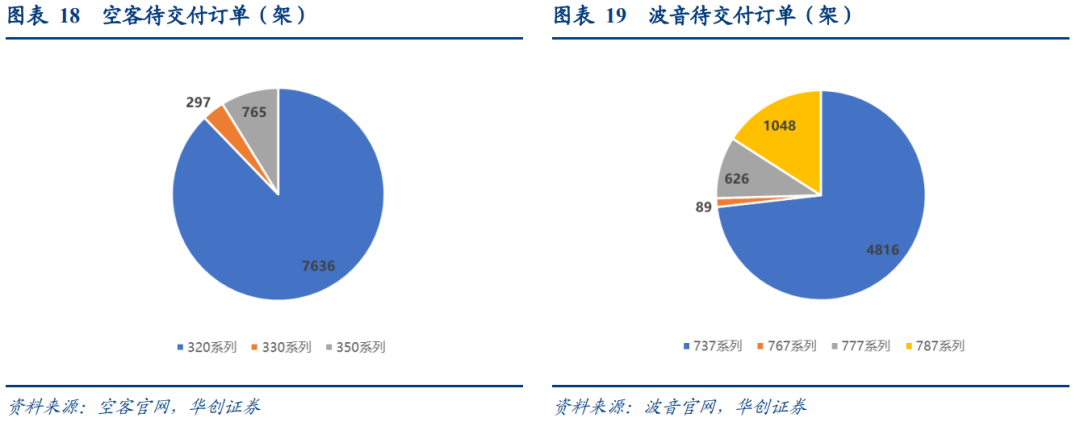 2)波音、空客的交付能力仍低于此前正常水平。且两家目前在手积压订单数量众多,交付时间拉长,空客累计待交付订单8698架,波待交付6579架。