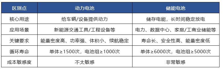 那么动力电池和储能电池的区别在于: