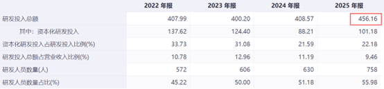 作为ICT设备的集成巨头,剑桥科技深知自身在产业链中利润单薄的痛点。为了摆脱低端组装的标签,推动业务向高附加值环节转型,公司在2025年支出了约4.6亿元的研发资金,规模约为长芯博创的三倍。
