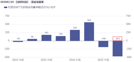与此同时,剑桥科技在规模扩张期的营运资金压力也较为显著。2025年,公司经营活动产生的现金流量净额为-4.71亿元,呈现出较为明显的净流出状态。
