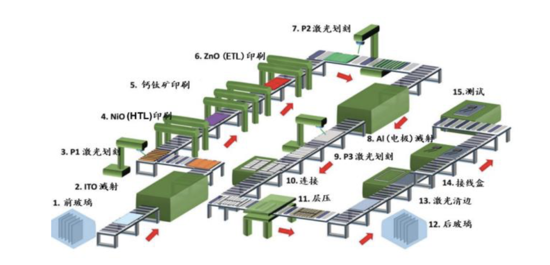 产业链中游围绕钙钛矿太阳能电池及组件的制造展开。