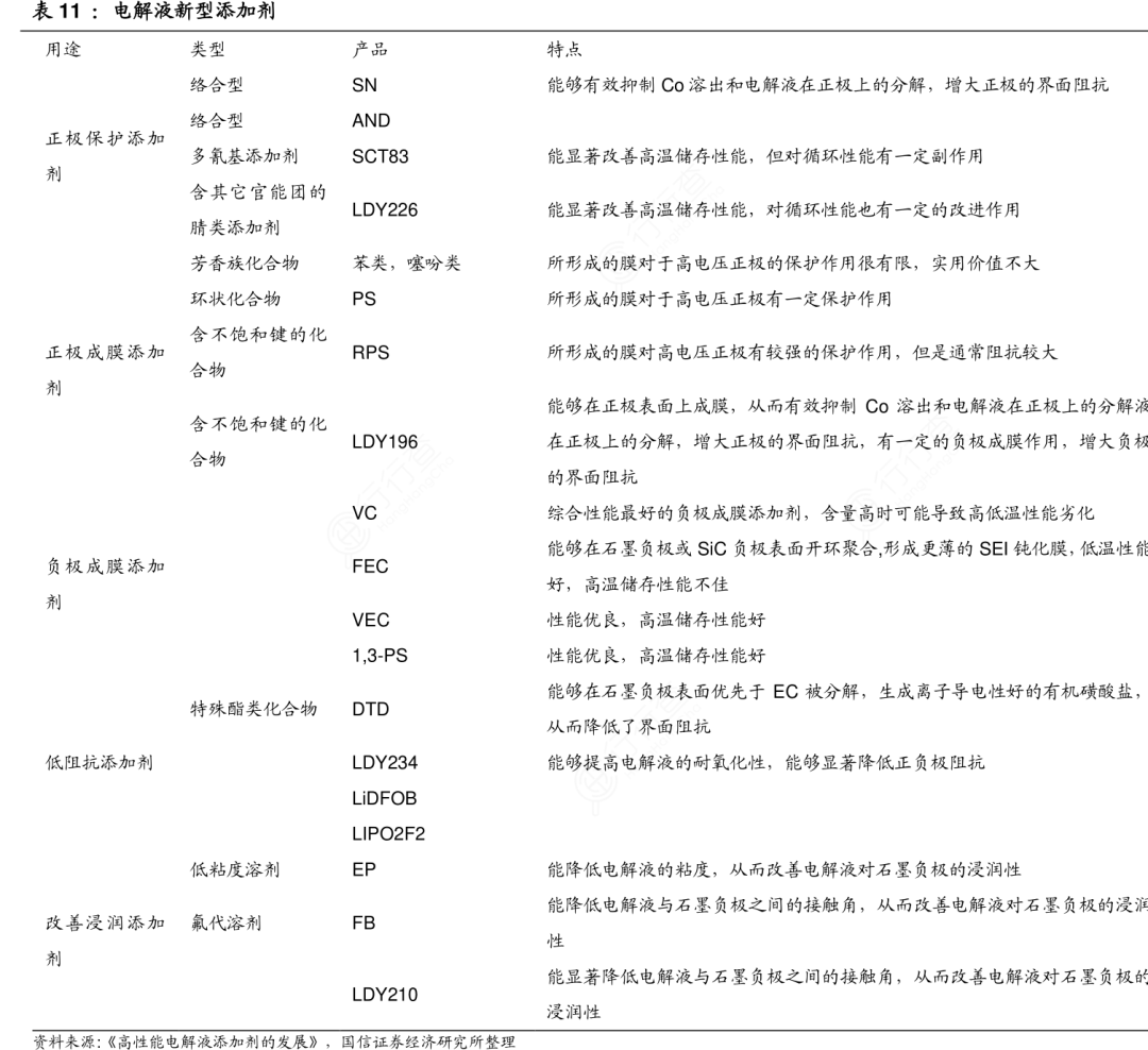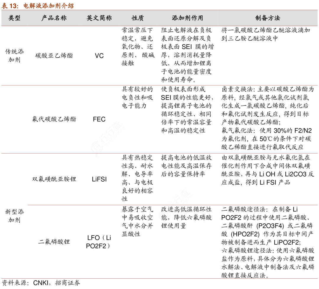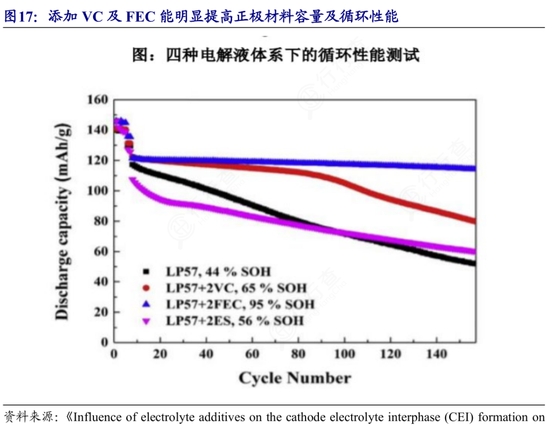 电解液添加剂可以构建稳定的电极-电解液界面,抑制电解液持续分解,将循环寿命大幅提升,还可以提升电池在极端工况的适应性,并通过阻燃、过充保护等功能,降低电池热失控风险。