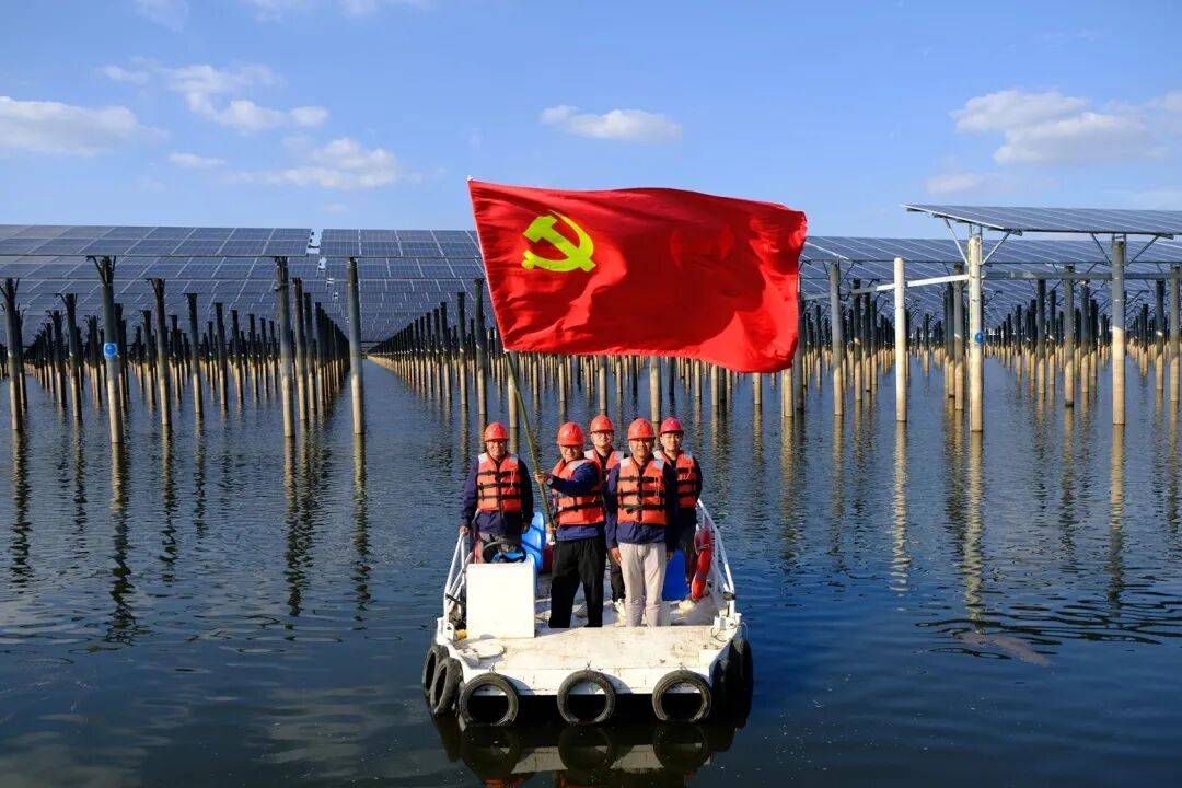 ▲铜陵枞阳福桥80MW水面光伏项目党员先锋队