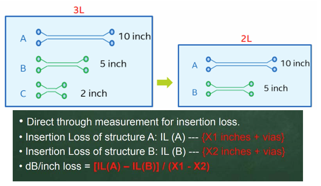 Delta-L方法是Intel开发的,通过设计两条不同长度的传输线,测试它们的S参数后进行拟合运算和差值,从而得到单位长度的插入损耗。