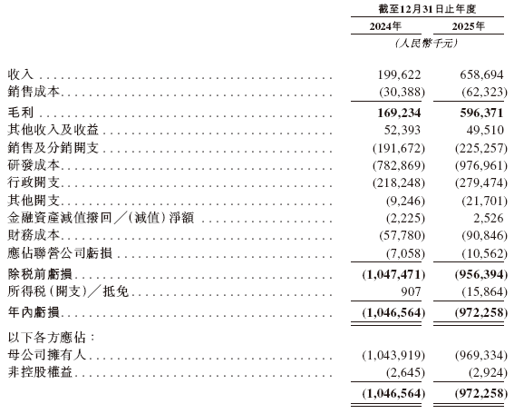 招股书显示,在过去的2024年和2025年,迈威生物的营业收入分别为人民币2.00亿和6.59亿元,相应的研发开支为人民币7.83亿和9.77亿元,相应的净亏损分别为人民币10.47亿和9.72亿元。