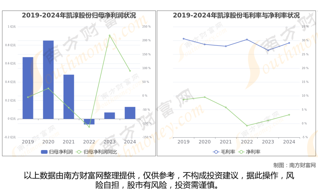 据凯淳股份2024年全年业绩显示(如上图),公司营业收入为4.22亿,同比增长-33.91%,近5年复合年增长率-16.94%。