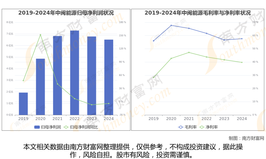 (如上图)2024年中闽能源公司营业总收入17.41亿,同比增长0.54%,近五年复合增长率为8.6%。