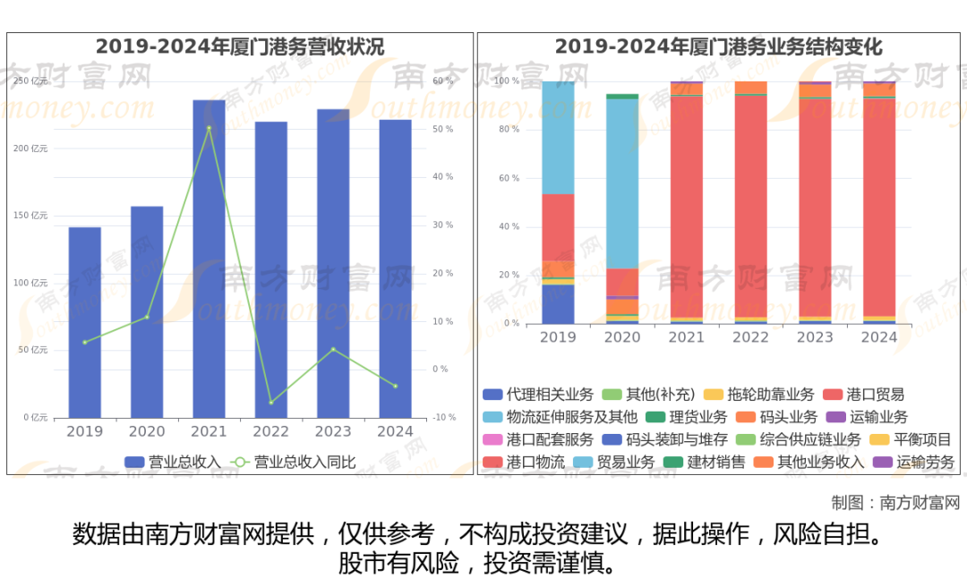 厦门港务于1999年4月29日在深圳证券交易所上市,公司主营业务为散杂货码头、临港综合物流服务和港口贸易三大业务板块。