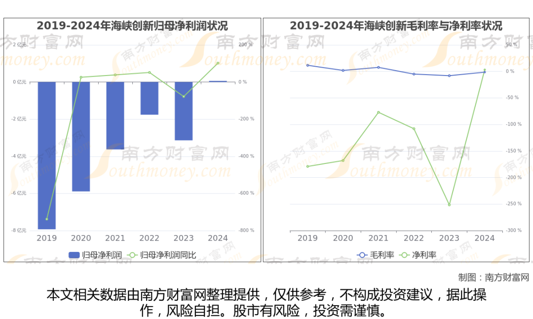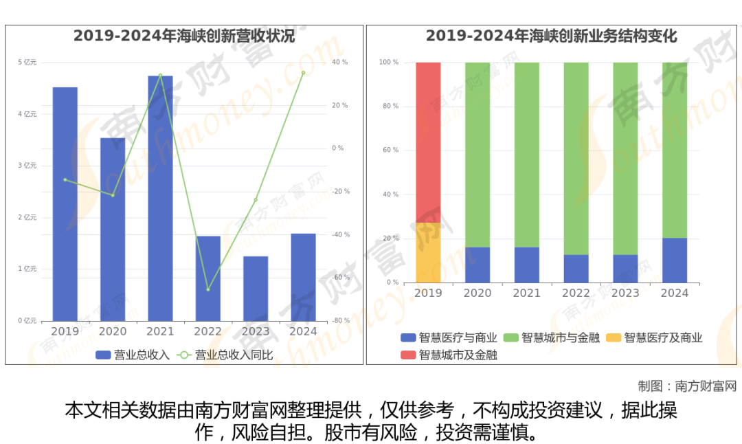 根据公司年度数据显示(如上图),2024年,海峡创新实现营业总收入1.69亿,同比增长35.24%,近5年复合年增长率-16.85%。