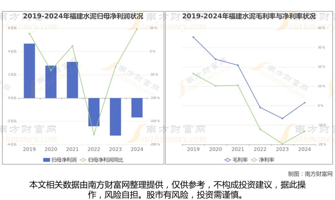 福建水泥年报数据显示(如上图),2024年实现营业总收入17.35亿,同比增长-15.38%,近5年复合年增长率-12.5%。