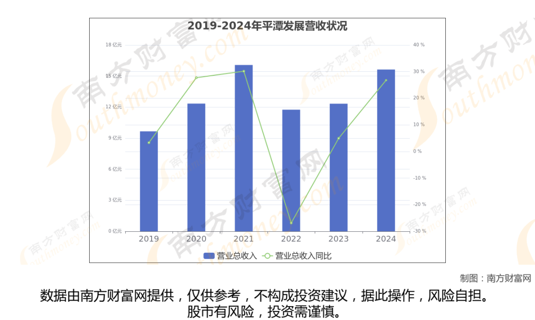(如上图)2024年平潭发展公司营业总收入15.63亿,同比增长26.78%,近五年复合增长率为6.09%。