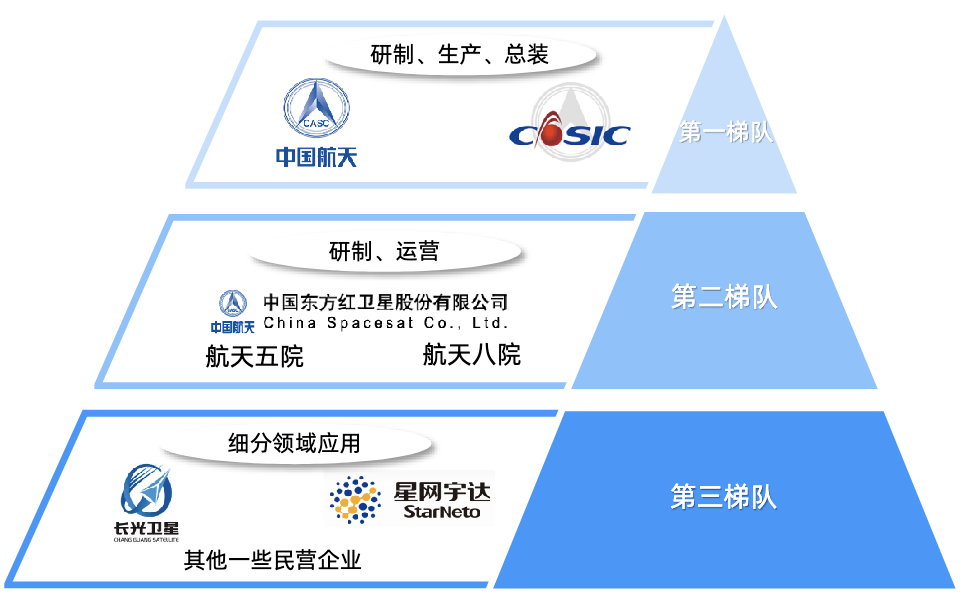 第二梯队国有科研院所和国企以以及第三梯队的部分民营企业共同为卫星制造提供了坚实的技术支撑。
