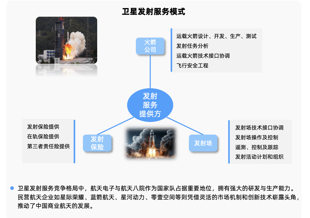 卫星发射的商业模式以发射服务提供方作为核心,提供商业发射运载服务。