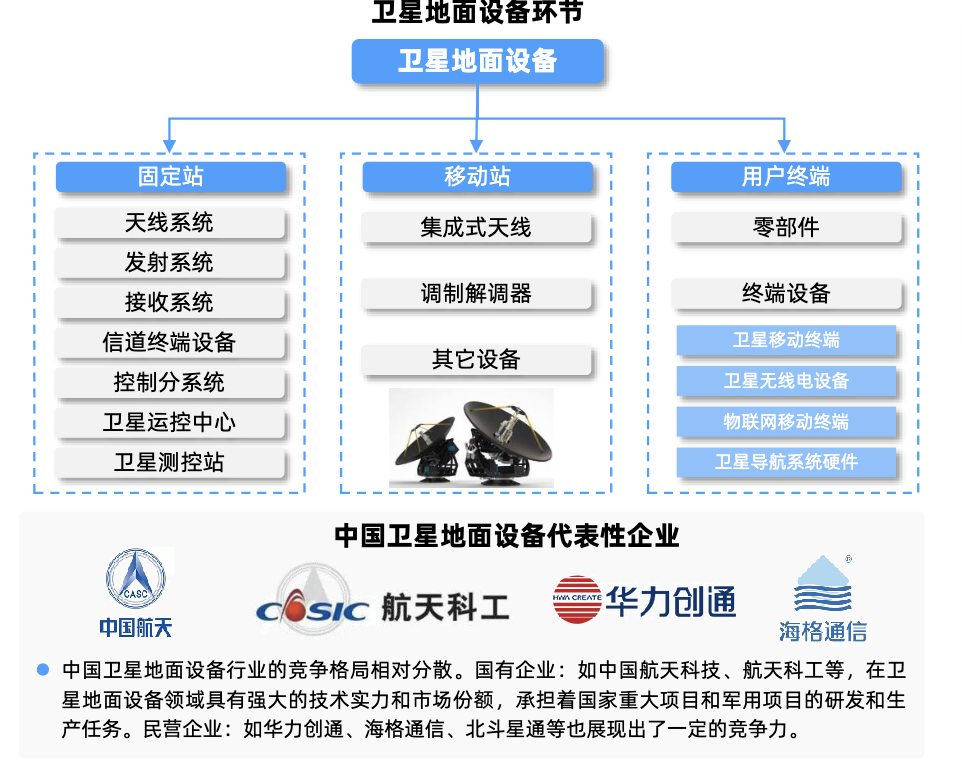地面设备主要包括固定地面站、移动地面站和用户终端。