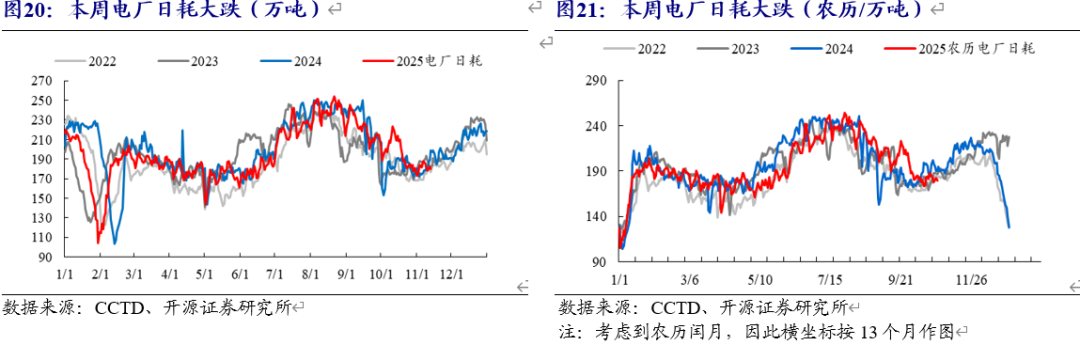 沿海八省电厂日耗:本周电厂日耗大跌,库存小涨,可用天数大涨