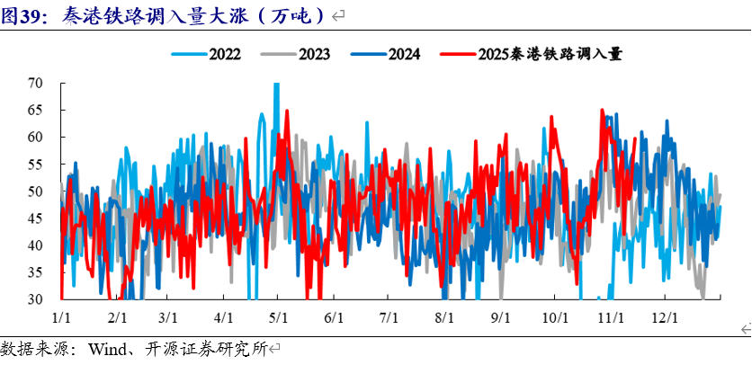 秦港铁路调入量大涨。截至11月14日,本周秦皇岛港铁路调入量59.8万吨,环比上涨2.5万吨,涨幅4.36%。